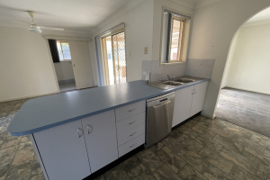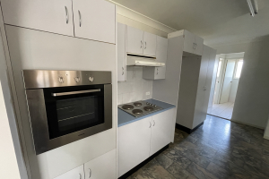 ** Walk-through kitchen with ample cupboard space and plenty of bench space